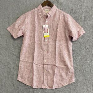 NEW Weatherproof Vintage Linen Men's M Red Short-Sleeve Button-Up Shirt