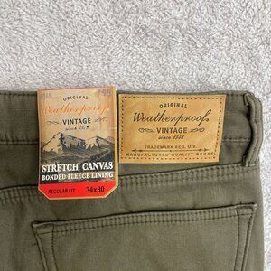 NEW Weatherproof Vintage Men's 34x30 Stretch Canvas Green Pants Workwear