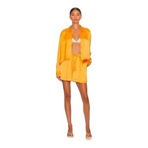 New Weekend Stories Caliope Short in Melon Front Pleat Zip Fly Satin Fabric