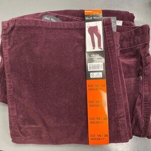 NEW Well Worn Women's 16 High Rise Corduroy Pants Burgundy Straight Leg