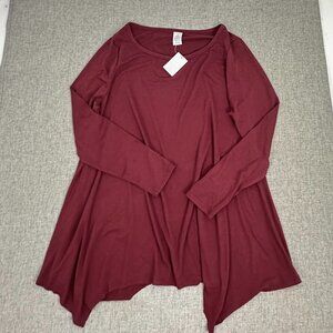 NEW! West Loop Shark bite Tunic Top Large Long Sleeve Relaxed Fit Burgundy