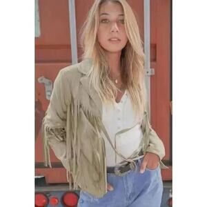 NEW! Western Fringe Soft Faux Suede Open Style Lined Jacket Coat M Light Tan