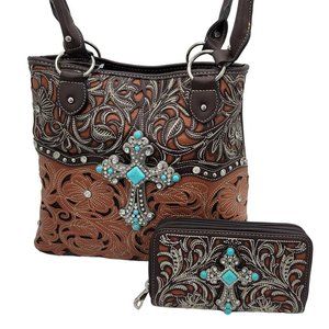 NEW Western Style Concealed Carry Shoulder Bag Purse and Wallet Set