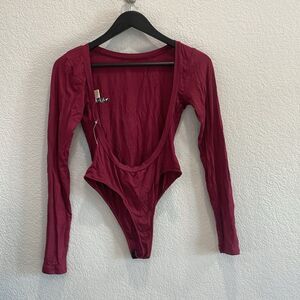 NEW Wet Seal 'Savage' Burgundy Red Open Back Long Sleeve Bodysuit Size Large