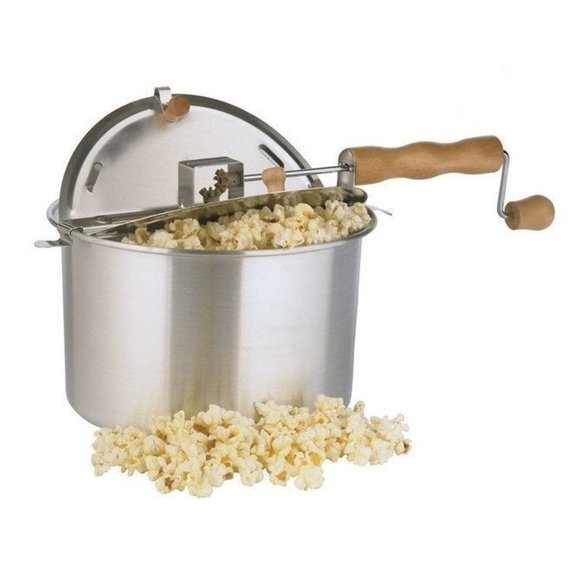 Pop your kernels the old fashioned way with Wabash Valley Farms Stainless Steel 6-Quart Whirley Pop Stovetop Popcorn Popper