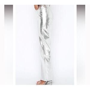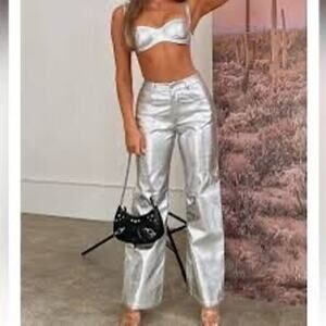 NEW White Fox Push The Button Pants Womens M Silver Metallic High Rise