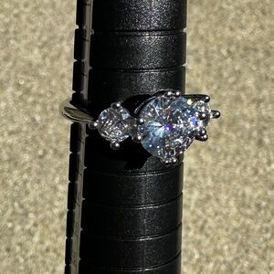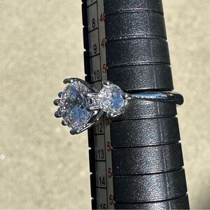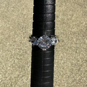 NEW White Gold Plated 3 Round Sparkling Clear Crystal CZ Stone Ring Size 5.75
