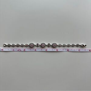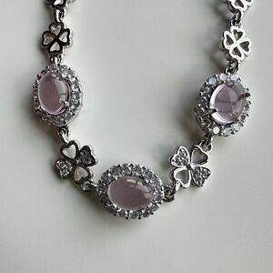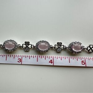 NEW - White Gold Plated 7.5" Bracelet w/ Pink Crystal CZ & Pave Clove Flower