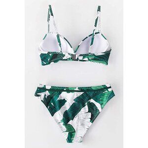 NEW White & Green Leafy Tropical Print Bikini Swim Set Size Small