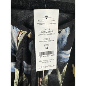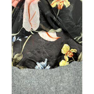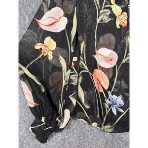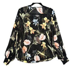 NEW White House Black Market Black Floral Blouse MED Sheer Lined Balloon Sleeve