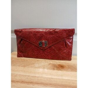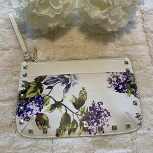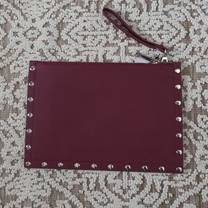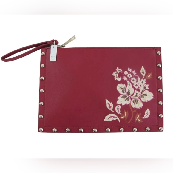 NEW White House Black Market Burgundy Floral Large Studded Clutch