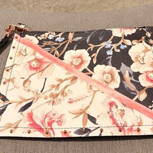 New with tags. $69 Retail. Measures approximately 11.75"×8.75". Zip top closure. can be used with or without clutch strap.