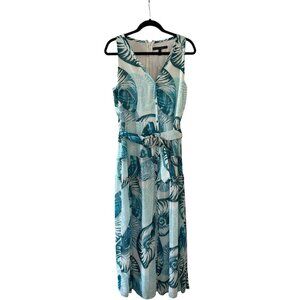 The NEW White House Black Market Sleeveless Seashell Midi Shirt Dress in a Nautilus Print is a stylish and versatile piece perfect for various occasions. Made from polyester chiffon, this dress features a flattering V-neckline, strappy sleeves, and a belted waist for a chic silhouette. The animal print pattern in shades of blue adds a touch of personality to the long, flowing design, making it ideal for travel, weddings, parties, or casual outings during the summer and spring seasons. Easy to care for with machine washable fabric, this dress from White House Black Market is a must-have for your wardrobe.