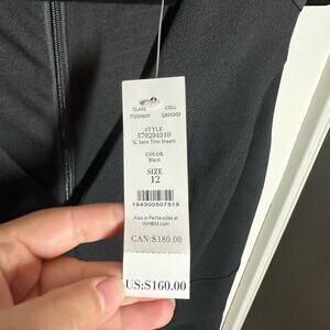 NEW White House Black Market Women's Black Satin Trim Sheath Dress Size 12