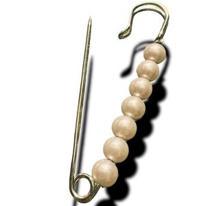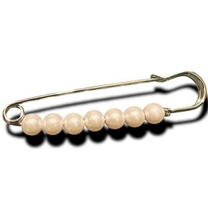 NEW White Imitation Pearl Silvertone Safety Pin Brooch