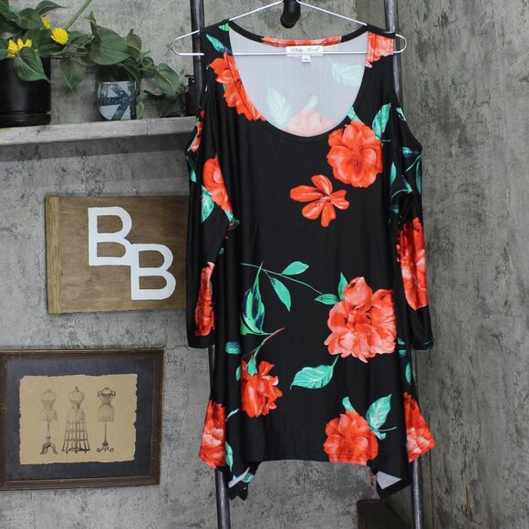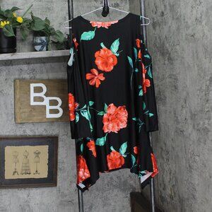 NEW White Mark 3/4 Sleeve Plus Size Cold Shoulder Knit Shirt Top Black Multi 2X