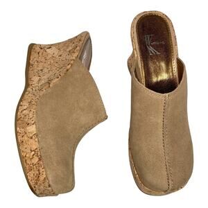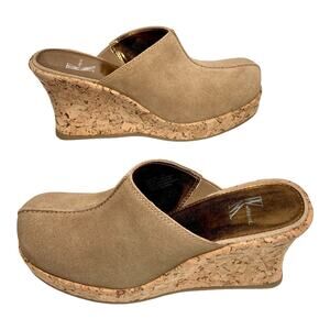 NEW White Mountain Suede Clogs Colleen Tan Cork Wedge Heels Size 7