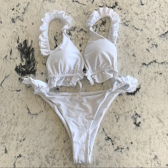 NEW! White Ruffle Bikini