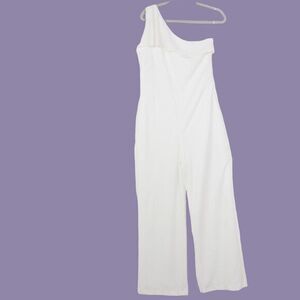NEW White House Black Market white one shoulder ruffle jumpsuit, 12