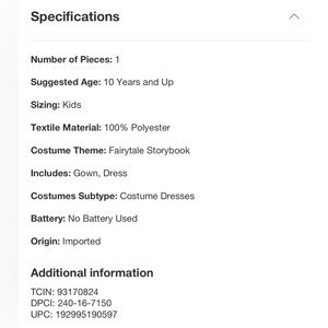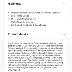 NEW Wicked Glinda costume -Size Large (10/12)