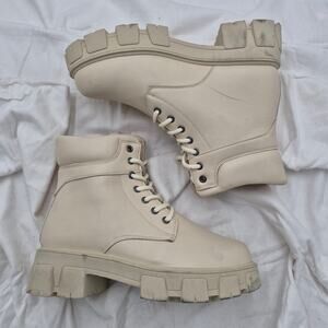 Wild Diva Faux Leather Lace Up Lug-Sole Chunky Block Heel Combat Ankle Boots size 8