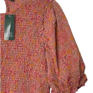 Wild Fable Pink Floral Smocked Dress Plus Size 1X Short Sleeve NWT