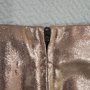 Gorgeous metallic sparkly mini skirt. The color is called champagne - it's good with a hint of pink. Vertical seaming. Hidden back zipper.