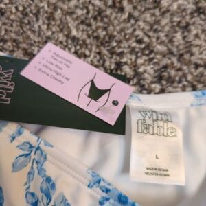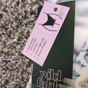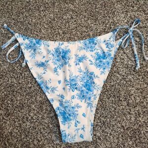 NEW Wild Fable Women's L Large Blue White Floral Large Cheeky Bikini Bottom Tie