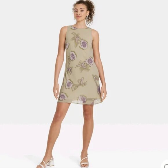 NEW Wild Fable™ Women's Mini Slip Dress Sage Green Floral