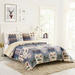 NEW! Wilderness Lodge 100% Cotton KING Quilt Set Cabin Wander Camping Moose Bear