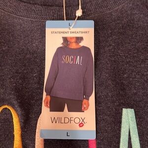NEW Wildfox Social Spell Out Navy Blue Statement Sweatshirt Large