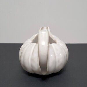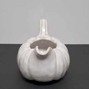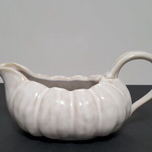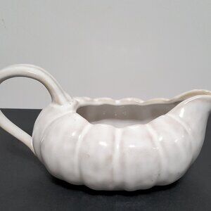 Adorn the table with serve ware that celebrates the arrival of autumn. This pumpkin-shaped gravy boat is expertly crafted from durable stoneware with a scratch-resistant white glaze that accentuates its sculptural detailing. Use it to serve gravy, sauces, salad dressing and more. Scratch-resistant stoneware. White hand-applied glaze. Microwave and Dishwasher safe. 4 2/3" diam., 4 1/3" high. 27-oz. cap.