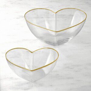 NEW Williams Sonoma Set of 2 Heart Shaped Gold Trimmed Glass Serving Bowls NIB