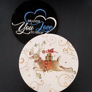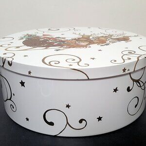 Inspired by the 19th-century American poem "A Visit from St. Nicholas," the illustrations from Twas the Night Before Christmas patterns adorn the tops of these cheerful nesting containers. Made from lightweight, durable tinplate with snug-fitting lids, the containers feature illustrations of a reindeer, a wreath and a holiday mouse. The tins are perfect for storing and serving artisanal candies and small holiday treats.