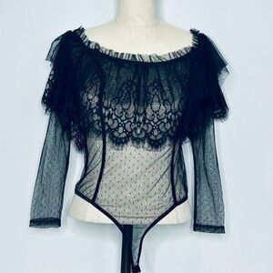 NEW Windsor Sheer Black Lace Bodysuit size Medium