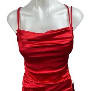 NEW Windsor Silk Satin Sleeveless Strappy Cowl Ruched Cami Midi Bodycon Dress S