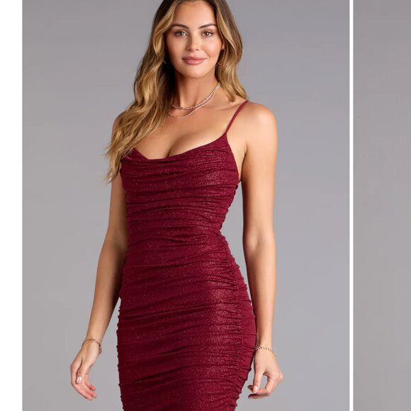 NEW Winsdor Homecoming/Semi-Formal Dress Wine Glitter BodyCon Dress- Size Small