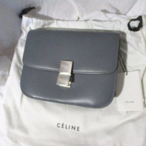 BRAND NEW WITH TAGS authentic GRAY "OLD" CELINE PARIS MEDIUM FLAP BAG in leather - GRAY/GREY/ - includes shoulder strap, still wrapped in plastic, and original dustbag, plus interior zip pocket, and signature hardware. MADE IN ITALY. Original box is a bit beaten up, bag itself is new with minimal scuffs from storage, unused! Measures approx 6.5" tall, 3.5" deep, 9.25" long,. Versatile color - top quality. Follow @psychotic_leopard on Instagram for LOADS of LUXURY, and @been_there_got_out for even more!