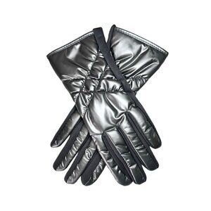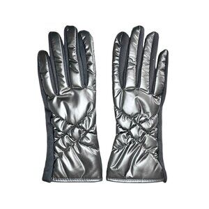 NEW Winter Puffer Gloves Sz.M 7 Gray Metallic Nylon Fleece Touchscreen Friendly