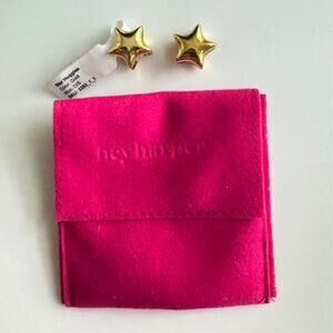 NEW With Tags And Pouch Hey Harper Star Huggies Earrings Gold Tone