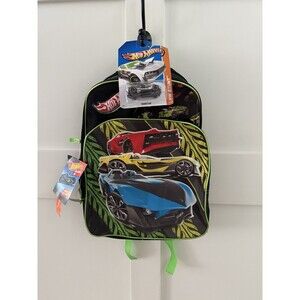 NEW With Tags Boys Hotwheels Car Backpack Green and Black 16" X 12" + FREE CAR