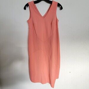 NEW Wolford Mid Coral Peach V Neck Sleeveless Asymmetric Bodycon Dress Size 4