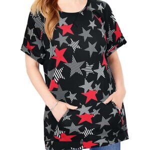 NEW Woman Within black white red star kangaroo pocket tunic 1X 22 24 2X