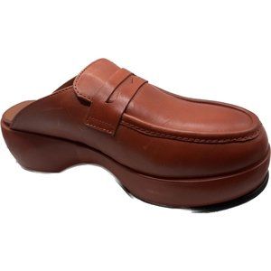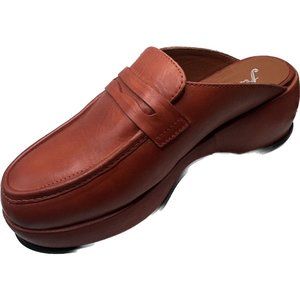 NEW Women Free People Winston Platform Loafer Mule In Saffron Leather SZ- 6.5