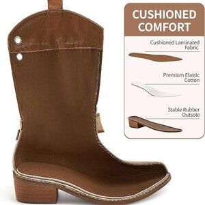 Premium Upper & Lining: These cowgirl boots for concerts feature a high-quality PU leather upper that is soft yet highly durable, and a soft synthetic lining that hugs the ankle comfortably without causing irritation.