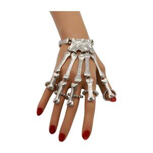 NEW Women Silver Metal Hand Chain Bracelet 5 Finger Skeleton Ring Skull Bikers