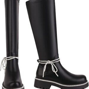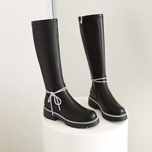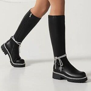NEW - Women sz 9 Knee High Boots, Round Toe, Silver Rhinestone Accents