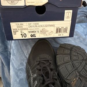 NEW Black on black ASICS gel running shoe for women. Size 10.