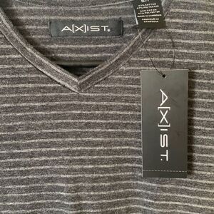 NEW Women’s Axist V Neck T Shirt Gray Pinstriped Sz Sm P