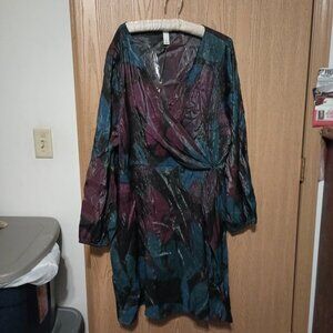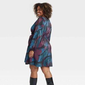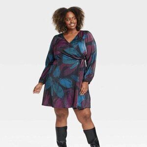 NEW Women's Balloon Long Sleeve Midi Wrap Dress - Ava & Viv™ Black Floral 2X